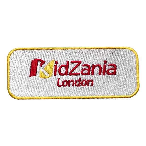 Ο ιματισμός συνήθειας κέντησε το σίδηρο μπαλωμάτων στην υφαμένη ετικέτα εμπορικού σήματος